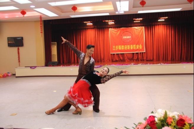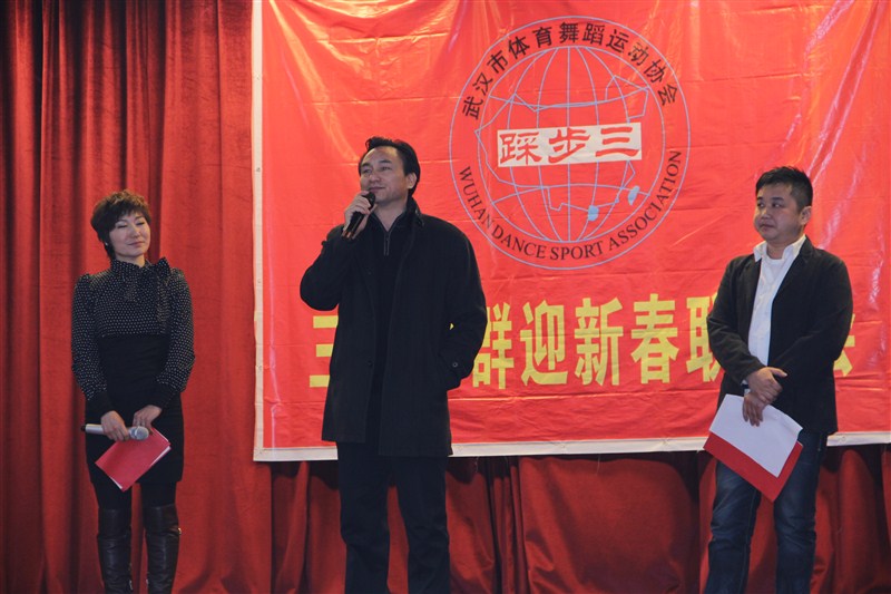 2013年1月12日下午1:30 分,三步踩群在青山区火炬大厦25楼举办了“武汉市体育舞蹈运动协会三步踩群迎春联欢会”。这是三步踩优秀老师及优秀学员在岁末年初为感谢所有支持和关爱他们的协会领导,社会同仁而献上的一份精彩的新年礼物。 在布置一新的场地内,鲜花簇拥,张灯结彩、欢声笑语;三步踩群以自己的方式辞旧迎新,展示自我。晚会在主持人铿锵有力的话语中揭幕,首先由协会主席苏厚平对 2012 年的工作给予了充分的肯定,同时对2013年协会的发展进行了展望和新的要求,勉励所有的老师正视成绩,不断进取,再创佳绩。联欢会上,苏厚平还跟协会命名教学点和2012年工作表现突出的优秀老师合影,让老师,学员真切体会到了一份努力一份收获的喜悦。 参会的领导及嘉宾有:武汉市体育舞蹈运动协会主席苏厚平,武汉市体育局干部,三步踩群高管赵莉群女士、武汉市体育舞蹈运动协会交谊舞主任王宝国副主任:卿仲邱,熊腊梅,彭庚,跑跑舞创始人及三步踩创始人:王寒燕 李承红 单良 候艳玲 晏飞华 唐波 谢涛 梅秀兰 蒲必林 谭连广 。 本次联欢会邀请了优秀老师优秀学员表演节目丰富多彩,高潮迭起,以舞蹈、独唱、朗诵,现场互动等形式多样的高质量、高层次艺术作品,使大家大饱眼福。